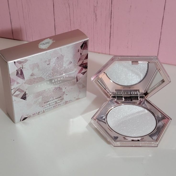 The Fenty Beauty Diamond Bomb All-Over Diamond Veil Highlighter delivers next-level sparkle with a weightless, melt-into-skin formula designed to reflect light from every angle. Inspired by pure diamond dust, this iconic highlighter creates a multidimensional glow that looks radiant without emphasizing texture. Its unique jelly-powder formula feels cool on contact and blends effortlessly, leaving behind an ultra-fine, glassy shimmer that elevates both everyday makeup and full glam looks.